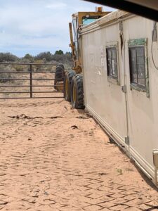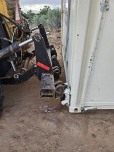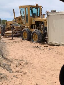 There is no reasonable explanation for the Motor Grader to be backed up to our POA Presidents personal shipping container other than to knowingly misappropriate by TUGGING, attempting to TUG, or planning to TUG his Earthship onto the property, you decide.