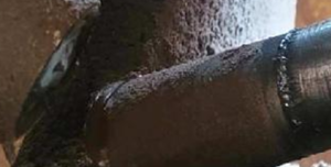 In the picture below: trying to figure out if that shiny ring around the shaft is a very bad weld or grease balled up with metal shavings from the gouged / scored shaft at the spline end?